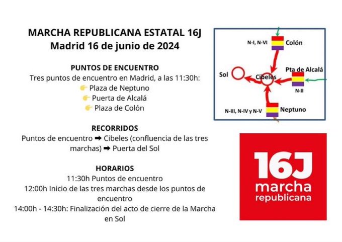 Este domingo 16 de junio coincidiendo con el décimo aniversario de la coronación de Felipe VI una marcha republicana recorrerá las calles de la Madrid.