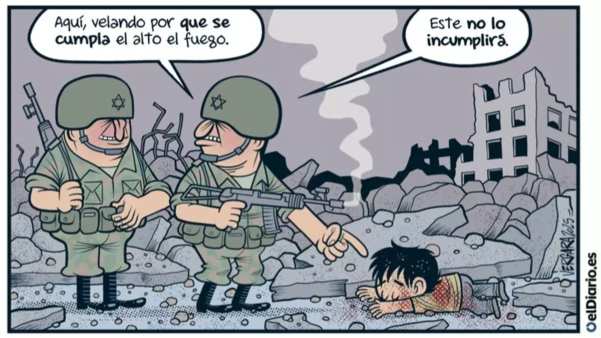 Mientras Trump habla del éxito del plan de paz, los israelíes mantienen los dedos en los gatillos de armas que siguen apuntadas a la población civil de Gaza. (martin.gak)